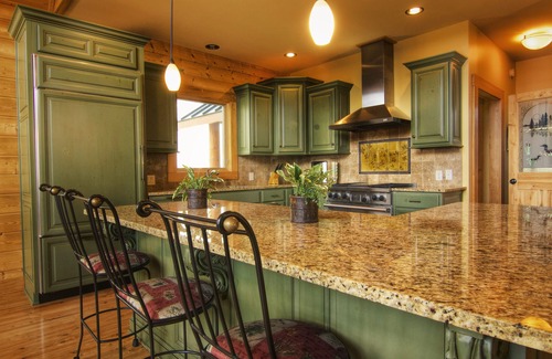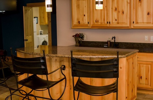 The gourmet kitchen boasts custom cabinets, granite countertops, Wolf oven, Subzero frig. The kitchen is fully stocked with all the appliances and cooking utensils you will need for your stay.