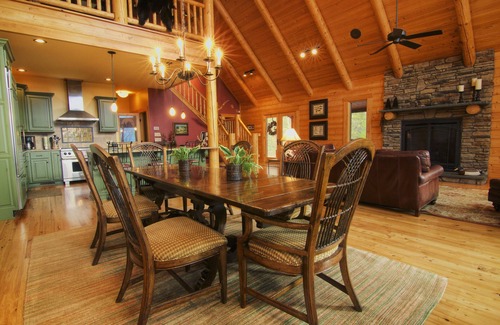 Crimora Mine Retreat is an upscale custom log home built on 150 acres of mountainside. Panoramic views, private lakes, and lakeside pavilion are exclusively yours for your stay. The home is tastefully appointed with high-end furniture, bedding, and artwork.
