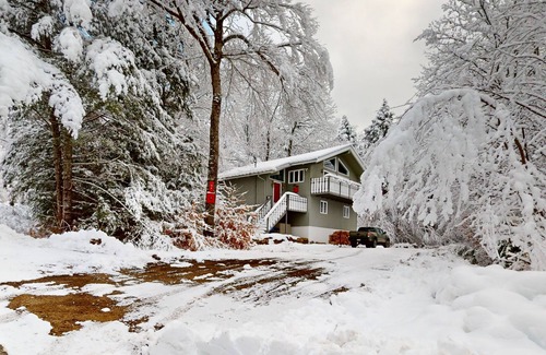 As you enter this quaint home away from home, you can walk up a flight of stairs to reach the main living area, which boasts a beautifully appointed, partially carpeted open floor plan with vaulted ceilings, exposed wood beams, and floor-to-ceiling windows. The living room presents you with a wonderful spot to gather with your loved ones and unwind - the warmth of the wood-burning fireplace invites you to curl up comfortably and stream your favorite shows on the smart TV with streaming services. The living room opens onto a deck with a gas grill should you feel like surprising your guests with grilled treats. Back inside, the home's full kitchen has all the major appliances needed to prepare culinary masterpieces. All three bedrooms can be found on the lower level. Additional perks include free high-speed WiFi.