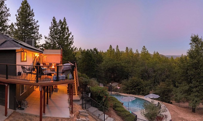 Our private, nature-drenched house is located between Auburn and Colfax CA is the perfect place to relax with the whole family. Enjoy the Hottub looking over the beautiful view of pine-covered hills, or dip in the private pool at your leisure. On the way to Ski resorts (less than 1 hour) and within proximity of conveniences, enjoy the privacy of nature while preserving easy access to all the things you need.