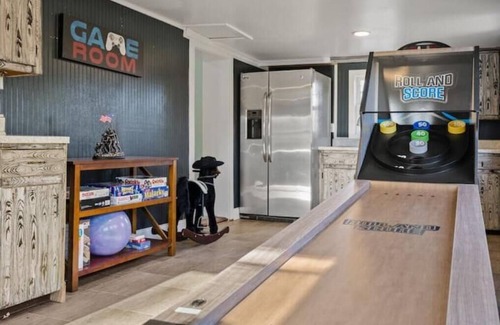 ☀ Game room with arcade style racing game, Arcade style Street Fighter, PacMan Frogger game console, giant Connect4 and board games. You'll also find a Pop-A-Shot game in the bunk room.
