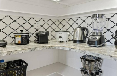 ☀ Fully equipped kitchen with tons of natural light. Small appliances include; toaster, slow cooker, rice cooker, hand mixer, blender, waffle maker