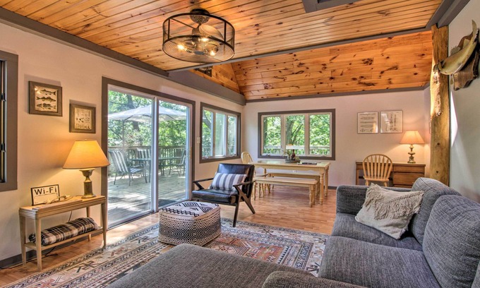 Get away from it all with a stay at this 1-bedroom, + lofted bedroom, 1-bath cabin nestled in the woods. Complete with a furnished wraparound deck overlooking the Wisconsin River and a renovated interior, this vacation rental is the ideal place to recharge after endless outdoor adventures. Head to Wyalusing State Park for a full day of hiking, biking, and fishing or rent a kayak and set sail on nearby Kickapoo River. At dusk, retreat home for roasted s'mores around the fire pit under the stars.
