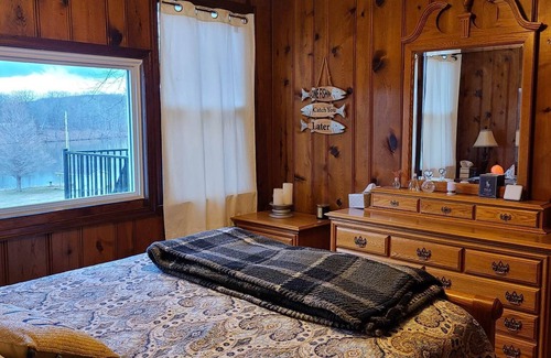 The new large deck is partially covered allowing for use regardless of the weather. We have comfy patio furniture and a gas fire pit for relaxing and star gazing. The house has four large glass panes which are a part of the sliding glass door that opens onto the deck with a beckoning view of the lake. Wildlife is abundant throughout the property, including eagles, Canadian geese, wild turkeys, hawks, deer, beavers, and occasionally quail. There is a charcoal grill on the patio. In addition, there is a fire ring down by the lake so that you can make authentic S'mores or gaze at the stars.