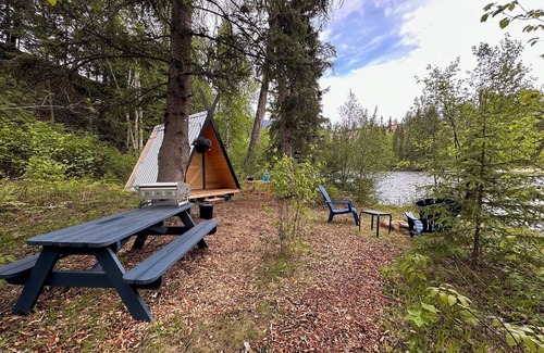 Looking for a romantic retreat with a Viking twist? Then, you'll love our cozy and intimate cabin right by the majestic North Thompson River and in the heart of Wells Gray Country. This secluded spot is perfect for short-term stays and lots of romance. You'll feel like you're in a fairy tale as you cuddle up by the fire pit, listen to the soothing sound of the water, and gaze up at the stars in your sky-view cabin and luxurious queen-size bed fitted with luxury linens. Included is a picnic table, BBQ, Fire-Pit with two Adirondack chairs, and two gravity-free loungers. This cabin is the ultimate destination for couples who want to escape the ordinary and embrace their inner adventurer.