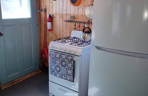 Perfect for those looking to unplug, rest and experience the peace and stillness of nature. While solar panels provide enough power for lights, a fridge with freezer, a water pump, and charging devices, the off-grid cottage cannot power microwaves, hair dryers, and other energy sucking electric appliances.