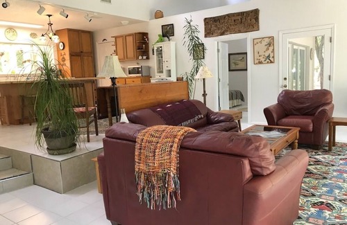 Enjoy a peaceful stay in the Maple Lake House far away from the noise and bustle of the city. This cozy home is nestled amongst live oaks and long leaf pine trees while overlooking beautiful Mandarin Lake. The home was designed and built by a local author and family friend, Marilyn Maple. Our family purchased and restored her home long after her passing, adding our own artistic flair. We hope you will enjoy our serene and peaceful home, sharing the love of its beauty as much as we do.