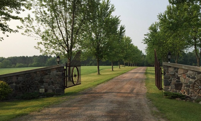 Wonderful ranch-style retreat with a peaceful, very secluded bay of the lake with 30 acres of privacy, woods, and lake views. Luxury woods surround the property for relaxing, family time, or a great nature get away, perfect in any season. You will be welcomed by a stone gate and quarter-mile driveway lined by maples with plenty of outdoor parking available in front of the house. Only a 1.5 hour drive from the Twin Cities!