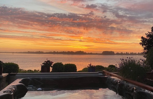 Secluded bayfront home, watch beautiful sunsets over the bay from the hot tub. | House in Coos bay