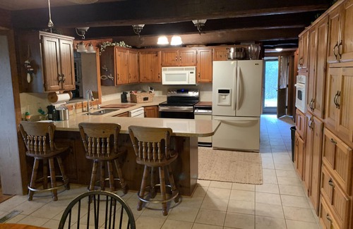 Secluded waterfront lake house…Just steps to the water... Canoeing, kayaking, and fishing. Enjoy s’mores around fire pit. Spacious Lakefront/lake view 5 bedroom 3 full bathrooms. WiFi Internet. Large deck with beautiful views!