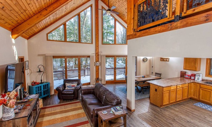 Welcome to the Secluded Cabin in the Woods - Dog Friendly, an enchanting retreat nestled in the heart of Egg Harbor, Wisconsin. This stunning cabin is not only a remarkable getaway but also an ideal setting for your wedding. With its serene location and exquisite natural surroundings, you can create unforgettable moments as you say "I do," surrounded by the beauty of nature. Imagine exchanging vows beneath the tall evergreens or celebrating with loved ones on the spacious wraparound deck—this cabin offers everything you need for a romantic yet intimate wedding experience.