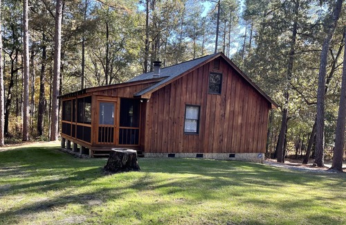 This small cozy cabin is secluded and very much in the woods, approximately 0.6 of a mile off NC Hwy 211, between Raeford NC and Aberdeen NC, down an unpaved road. Enjoy peace and quiet and communing with nature. Not far from Carolina Horse Park, (3.3 miles). Dreamville MX (11 miles ),Pinehurst NC, (16.miles), Aberdeen NC (9 miles), Southern Pines NC, (11miles), Raeford NC, (9 miles). Fayetteville NC, (29 miles). The cabin is small, but but will sleep three people comfortably. It has a queen size bed, a full length sofa (not a sofa bed), and a twin size electric blow up mattress.