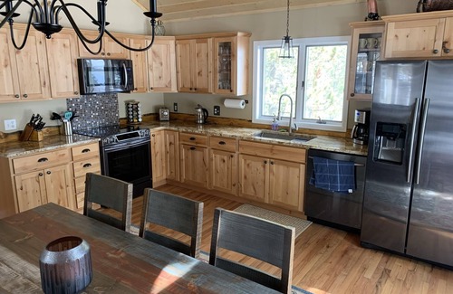Beautiful 3 Bedroom 2 bath house buried in the pine trees on 4 acres near Wild Basin and Estes Park. Wild Basin (Rocky Mountain National Park) entry road just 200 yards down highway 7 from Tahosa Park South Rd. This is a recreation enthusiast's dream without being too close to the city. Close to fishing, hunting, hiking, biking, and guided horseback tours just a mile down the road at Meeker Park Lodge. The master suite includes full bath, walk in closet and private deck with views of a spectacular ridge. The lower level Queen room has access to lower bath and boast great views from the french doors to the exterior. The dual full sized bedroom has it's own private desk for those who may have to work from home. The home has a huge deck with built in dinning table, pellet grill and adirondack chairs to lounge. The basement living area includes 60" TV on Apple TV. The couch is a Queen pull out. There is a wood insert upstairs for entertainment and heat. The basement includes full laundry machines. The upper level has fully remodeled kitchen with new appliances and a dinning area in the kitchen. The main living area has an 82" Smart TV hooked to Apple TV and DVD player. The DVD collection is around 200 movies strong. There are two desk areas flanking each side of the stone fireplace with wood burning insert for asthetics and heat. Great cabin to work remotely and still get an afternoon hike up to Copeland Falls. There is abundant wildlife in the area including Elk, Deer, Moose and Turkey. This is also a great area to possibly see Black Bear.