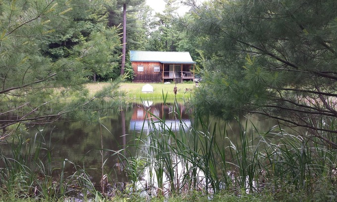 Cabin in the woods on 20 acres in the heart of the Finger Lakes. A pond off the back porch. Front and back porch both have roofs. picnic table and gas grill on the back porch. Fire ring next to the pond. 20 acres of property to explore with another pond. Follow the trails or make your own. Small creek goes thru the property. Keuka Lake and Hammondsport within a few miles along with wineries, breweries, distilleries, cheese tours, pottery, antique stores, many waterfalls and restaurants close by. Perfect for a romantic getaway or family vacation. Bristol Ski Mountain is close with year round activities. On Saturday stop by the The Windmill Farm and Craft market with nearly 200 shops. Marked trail in the woods.