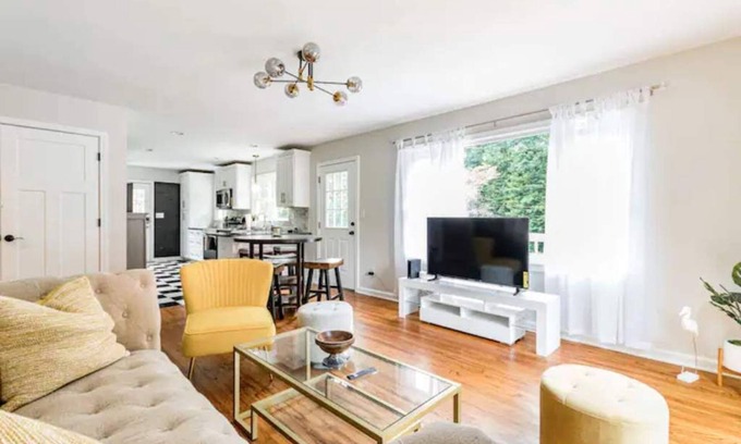 Welcome to Cabin @ Raleigh! This beautiful 2 bedroom 1 bath property is fully renovated & is 15 minutes away from Dtown Raleigh. It is also very close to Garner, Walnut Amphitheater & I-40z The exquisite design and layout was professionally furnished with our guests’ stay in mind. the dining room has French doors that leads out to a beautiful wrap-around deck that is perfect for spending time with loved ones, and entertainment. We can’t wait to have you stay at our beautiful property!