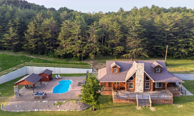 Secluded Cabin, Sleeps 20-Pickleball, Pool&Hot Tub is located in Concord. Secluded Cabin, Sleeps 20-Pickleball, Pool&Hot Tub provides accommodation, featuring Sports/Activities, Pool, Bedding/Linens, among other amenities. This Cabin features Sports/Activities, Pool, Bedding/Linens, to make your stay a comfortable one.