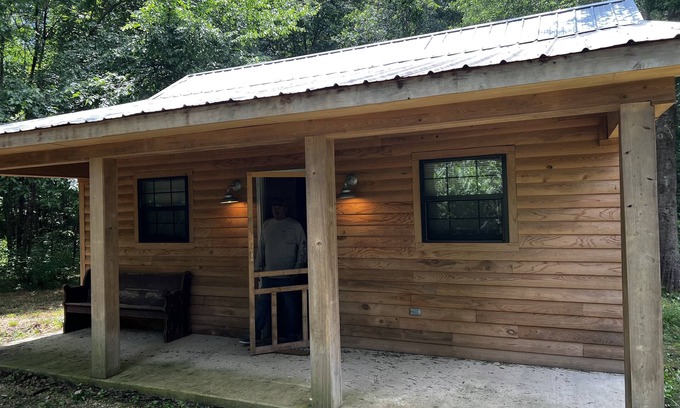 We built the cabin during the pandemic because the location had great wifi access, and we needed an office to work out of. We named it the Shrek Shack because it gives us the secluded fill. A great place to get away from the hustle of everyday stressors and relax. There is a fishing pond and creek access for during the day and a fire pit for night.