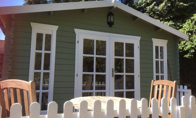 The private cabin is set completely apart from the main house, beautifully secluded and is self contained, suited for a romantic getaway for a couple and a well behaved dog! We have a private wood fired hot tub for the exclusive use of cabin guests and this the perfect way to enjoy the night sky after a busy day. The cabin has a deck and gas BBQ and very private.