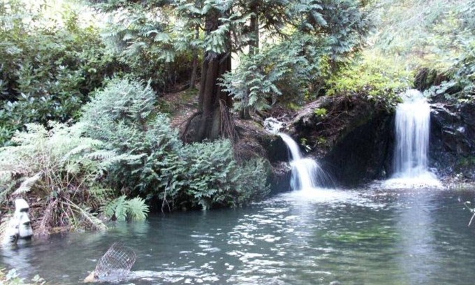 The caravan is set in a large, 2 acre, sheltered and secluded garden and natural woodland, with babbling streams feeding 5 delightful pools, and a 6m waterfall that is floodlit after dark.