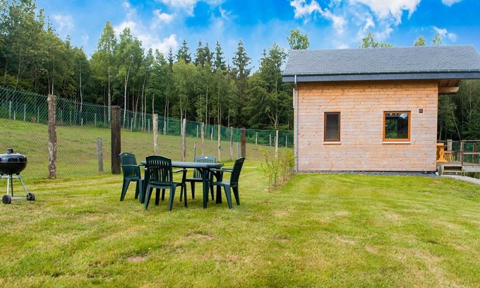 Inside, the chalet features a fully equipped kitchenette and convenient on-site parking. Whether you're sipping coffee on the terrace or exploring nearby trails, this cozy retreat offers the perfect blend of comfort and nature. Luxembourg Airport is 83 km away, making it easily accessible for a weekend escape or longer stay.