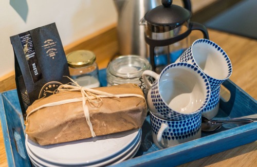Set within the peaceful grounds of The Yair in the Scottish Borders, Garden Cottage offers the perfect mix of comfort and countryside charm. Sleeping up to four guests, it overlooks a beautiful walled garden and sits close to the River Tweed. Inside, the welcoming living room features a deep sofa and two armchairs around a wood-burning stove, while the country-style kitchen is fully equipped for relaxed self-catering. A steep staircase leads to the bedrooms — one king and a flexible second bedroom that can be set up as a king or twin — and forms part of the cottage’s character, though it may not be suitable for the elderly or those with restricted mobility. The modern bathroom with a walk-in rainfall shower is located downstairs.