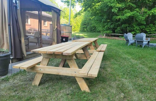 Escape to our unique, family-friendly private estate nestled in a breathtaking forest. Relax in our charming home with a view or gather around the cozy fire pit at night. Enjoy nearby Lake Couchiching and the stunning Lake Simcoe, just a short distance from the property.