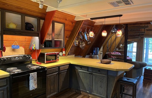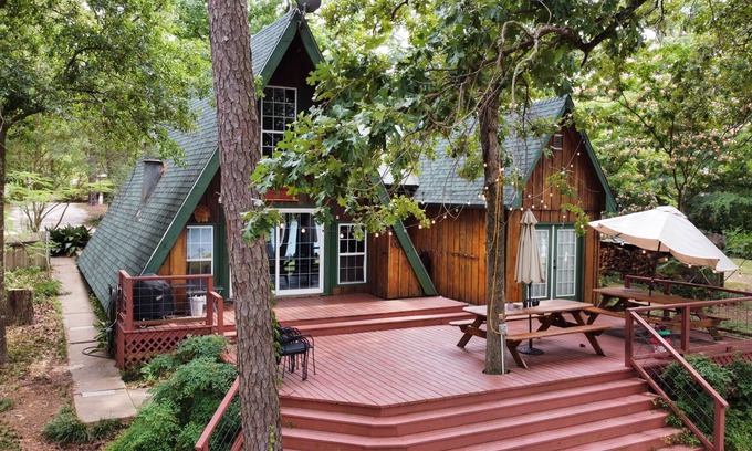 Secluded Cove is an idyllic wedding accommodation located right on the serene shores of Lake Sam Rayburn. With its spacious layout and beautiful natural surroundings, this charming A-frame property comfortably sleeps 18 guests, making it perfect for your wedding party or family gatherings.