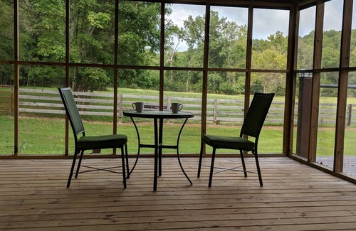 This sweet little farm house has been completely renovationed. Tucked back into 20 acres of privacy. You will step into tranquility of nature and wildlife. The house is surrounded by a board fence to keep the cattle. You can see the great little pond from the screened in back porch. See geese fly over, hear the frogs, deer, turkeys, cows and the cricket sing you to sleep. You will not know you are only 5 minutes from downtown. I hope you enjoy the peace and quite as much as we do.