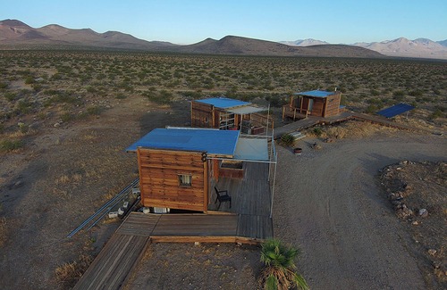 The ultimate "Getaway from it all," Desert Location. The Pods are convenient to town, 6 miles away, but will make you feel like you're more remote than you really are. Enjoy your seclusion with the nearest neighbors, 3 miles away. Insulated and cozy, the Pods have AC and Heat, Hot water on demand, 3-showers in our zero threshold Bathroom and Bedroom entry's. Enjoy the nice weather by opening the window walls to enhance the indoor/outdoor aspects of the design. The found stone and glass desert mural in the bathroom adds a quirky, bohemian artistic touch as you shower with views of the open desert. Ranked as a top spot for stargazing. We also offer guided desert UTV tours of the desert as an additional option.