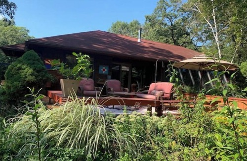Secluded 2,500 sq ft Prarie Style home just an hour from Madison & less than 20 minutes to Spring Green, American Players Theatre, Frank Lloyd Wright's Taliesin, House on the Rock, the Wisconsin River, Governor Dodge & Tower Hill State Parks, & more! Enjoy relaxing, reading, hiking, or birdwatching on our wooded 30 acres by day, eating on the hillside deck, & stargazing by the fire circle in the evening. During winter you'll be toasty warm inside while looking out on beautiful recent snowfalls.