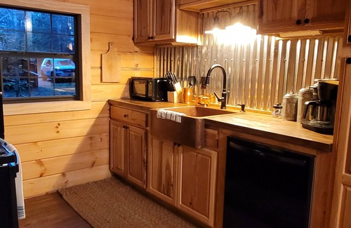 1BR 1BA log cabin in East Tennessee with a sleeping loft. Looking for a secluded log cabin close to world-class fishing at Watts Bar Lake? Just an 8 minute drive to the lake, 30 minute drive to waterfalls and hiking! This brand new log cabin offers a place to enjoy all that East Tennessee has to offer! Quiet, peaceful setting in the woods with newly installed fiber internet, smart TV, and fully functional kitchen and laundry. For stays longer than 25 days, message us and we can send a discount for your consecutive booking.