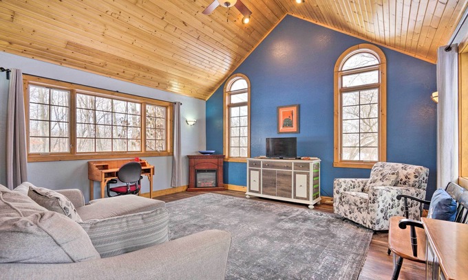 Plan your next adventure to Ellsworth, the 'Cheese Curd Capital of Wisconsin,' once you’ve booked a stay at this lovely 1-bedroom, 1-bathroom vacation rental! Surrounded by tens of acres of woodland, restored prairie, and hiking, this Pierce County apartment is the ideal quiet getaway or retreat for writing and observing nature. This area of Wisconsin is truly ideal for outdoor enthusiasts, with Kinnickinnic State Park, Frontenac State Park, and Afton Alps all within 25 miles.