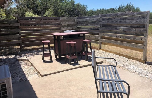 The Laredo cabin, located on the Hideaway Ranch and Refuge is the perfect place for your family or group to "hide away"! 140 acres of native forest and grasslands are available to hike and explore. The refuge is home to almost all native North Texas wildlife, including a bison herd which freely roams the property! We have over 4 miles of hiking trails, several fishing ponds, a swimming pool with a whirlpool, and a Recreation room located in our fictional western town of "Buffalo Gulch".