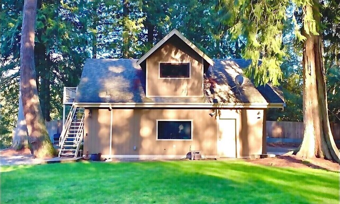 Escape the hustle and bustle and relax at this tranquil forest getaway. Equipped with a kitchen, bathroom, washer/dryer, and chickens/ducks—this place has it all. Close to central shopping and amenities yet far enough away to enjoy the serenity of the peaceful flowing Green River. Plenty of areas to hike, bike, kayak, relax, and immerse yourself in nature. About 45-miles from Crystal Mountain. Great place to stay for local events including races, weddings, concerts, and more! Not ADA friendly due to staircase access.