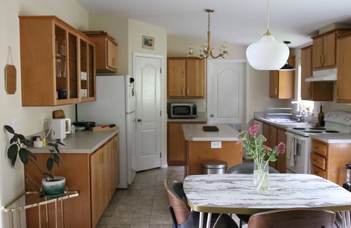 3 bedrooms 2 bathrooms, large soaking tub, plants, art, a cooks kitchen