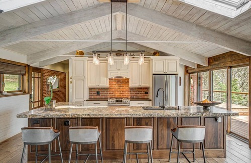 • Fully equipped open kitchen with skylights, large island seating, and everything you need to cook and gather