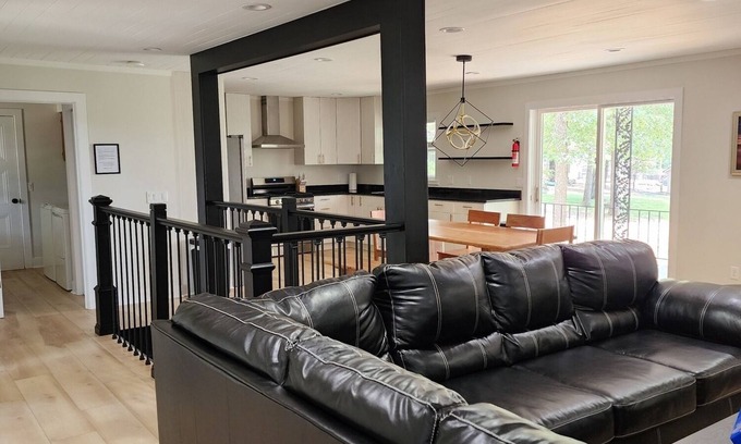 This is a 4 bedroom, 3 bathroom house. The master bedroom has a king size bed, and a full size pull out couch. The second bedroom on the main level has two queen size beds. In the walk out basement there are two more bedrooms. One has two sets of twin size bunk beds. The other room has two more queen size beds.