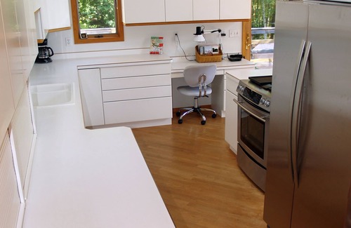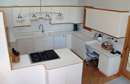 The main kitchen is well-equipped, with a new refrigerator and microwave, a gas island range, dishwasher, both Keurig and standard coffee makers, and endless cabinets!