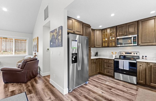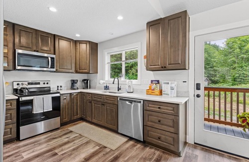 ✔ Private hot tub, fire pit, and BBQ: These premium outdoor amenities provide the perfect setting for relaxation and making memories, from a starlit soak to evening s'mores.