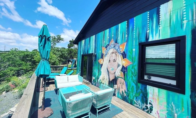 This lakeside retreat is situated on a private cove with lake access and beautiful views. The property has been recently renovated with two bedrooms and one bath and stays true to Austin’s quirky style. Enjoy a cup of coffee or cocktail on the oversized deck. The swimming platform makes fishing and lounging on the lake hassle free. CHECK LAKE LEVELS AS LAKE ACCESS IS DEPENDENT ON LAKE LEVELS AND PRICING IS ACCOUNTED FOR CURRENT LAKE LEVELS/ACCESS TO LAKE. Kayaks, paddle board, tubes, 4 adult life jackets, foam lily pad included in rental.