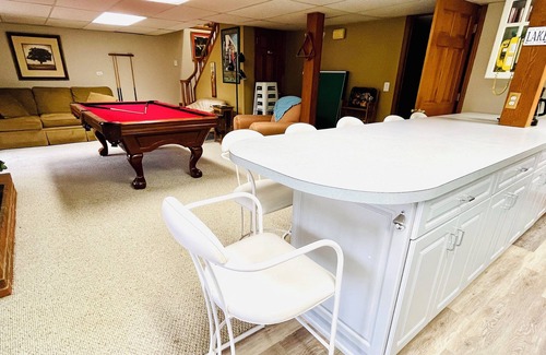 Welcome to our charming house on a quiet cove of Lake Hickory. This tranquil property offers you the entire private downstairs level of our home and features 1 large bedroom with a cozy queen bed, a full bathroom with a bathtub, a fully stocked kitchen, a pool table that converts to ping pong, and essential amenities like AC, heating, and WiFi. Nestled on a beautiful wooded lot, this retreat is perfect for guests looking to unwind and enjoy a peaceful getaway. We'll be available to answer any questions while you stay at our place, but also give you privacy. Our sweet kitty Miss Moo looks forward to greeting you as well! Although she stays upstairs with us, folks with cat allergies might choose another place.