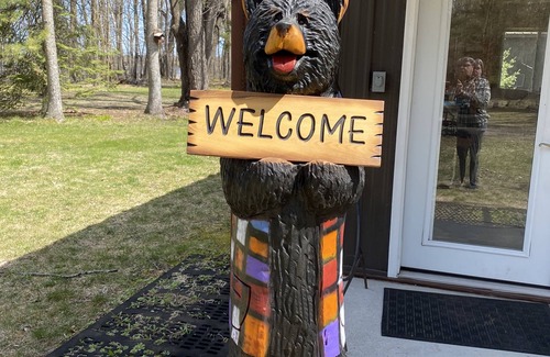 - CABIN #4 (Bear) Beautiful knotty pine cabin tucked back by the woods!