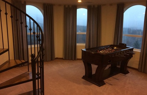 Guests have access to the entire home but for a storage room. This includes the main floor with two suites (own bathrooms), living, dining rooms and kitchen, the second floor with two bedrooms, shared bath, loft, and a third floor tower for storm watching, star gazing, or pretending you're a pretty pretty princess (kids LOVE it). The daylight basement level has a pool table and TV lounge, two more bedrooms, wet bar, laundry, and a family bath.