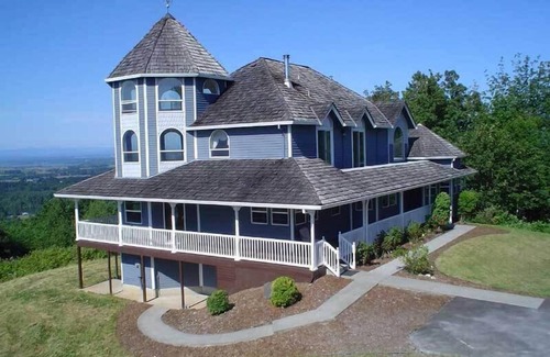 Fully furnished and decorated, this house is very secluded Victorian on 45 Forested acres built in the 90's perched over a hillside with great views on acreage. It's 6 bedrooms are able to accommodate 12 guests with more space to spread out if needed. There are nearby birdwatching, hiking, and natural areas. Sauvie Island is just a 4 minute car ride away. Heading into downtown Portland for dinner or attractions will take you 17 to 20 minutes door to door in most cases.