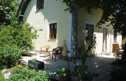 Our country house reminds me a little of the "Gabriele Müntherhäuschen" in Murnau. About 100 m2 in size, it has a good old room, with a fireplace and an open kitchen. In addition to the rooms, there are a total of 3 rooms, a beautiful terrace with a small garden, which is decorated with various plants and fruit trees.