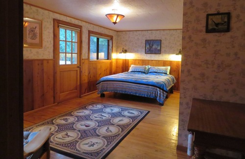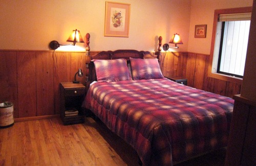 Great Expectations Lodge is the ideal rural getaway. Wildlife, privacy, views. 3800 square ft. lodge has vaulted living room, fireplace and satellite TV. Wi-Fi. Fully equipped kitchen, dining room, blender, coffee maker, microwave, dishwasher. Five bedrooms with 8 beds plus 1 sofa bed available. Two full bathrooms and one half bath. Pool table and card table in basement. Lodge is non-smoking with exception of man-cave. Man Cave has it's own satellite TV, wet bar and gas fireplace.