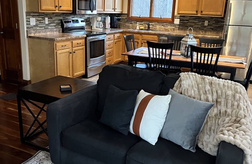 This 4-bedroom, 2-bath lodge combines rustic charm with modern comforts, perfect for families, couples, or group getaways.