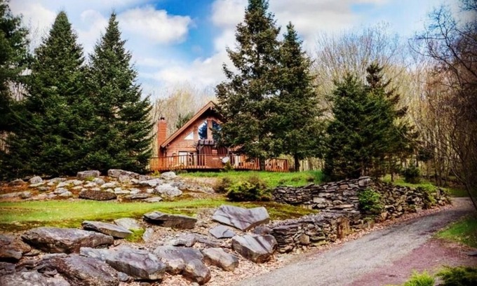 Our home is picture - perfect. Enjoy the Alpine - like meeting and view from the privately framed hot - tub on the expansive 800+ square foot deck. 3 full bedrooms, the master bedroom upstairs sleeps 2, the bunk bed bedroom sleeps 3, and Black bear bedroom sleeps 2. There are 2 bathrooms fully equipped. The living room space open floor-plan living room with wood stove, with beautiful whisky couch. Have fun at the 1920 "speakeasy room" playing pool, darts or watching Netflix or Hulu on the big screen. Bring your marshmallows, start a fire and just relax...