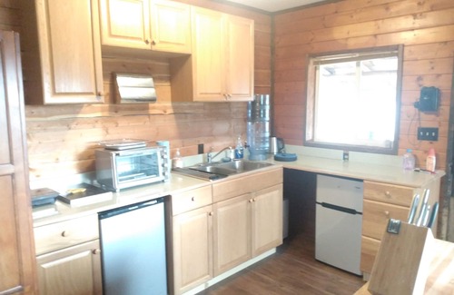 If you have ever rented a forest service cabin, this is similar, although it also has electricity and a full kitchen setup. If you are looking to get away from it all and spend time on the porch taking in the view and the stars, this is the spot. Yet you can also make a quick run into town for whatever you need (restaurants, grocery store, and brewery).