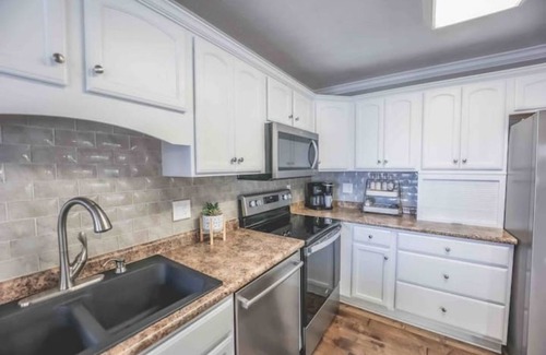 Kitchen is fully stocked and equipped with spices, sugar, flour, oil, pots/pans/cookie sheets and cooking utensils etc. There is a coffee maker (Keurig Duo) with a variety of K-cups, cream, sugar and flavoring syrups. The dining room has a large table that can seat up to 10 people.